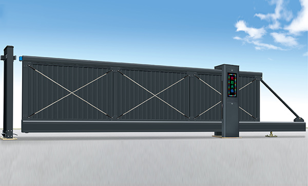 电动伸缩门的作业原理是由门板由支架支撑在导轨上,导轨连接到驱动设备,驱动设备通过导轨带动门板滑动,每个门都有锁闭组织,在门封闭时,锁闭组织完毕机械锁闭。 …